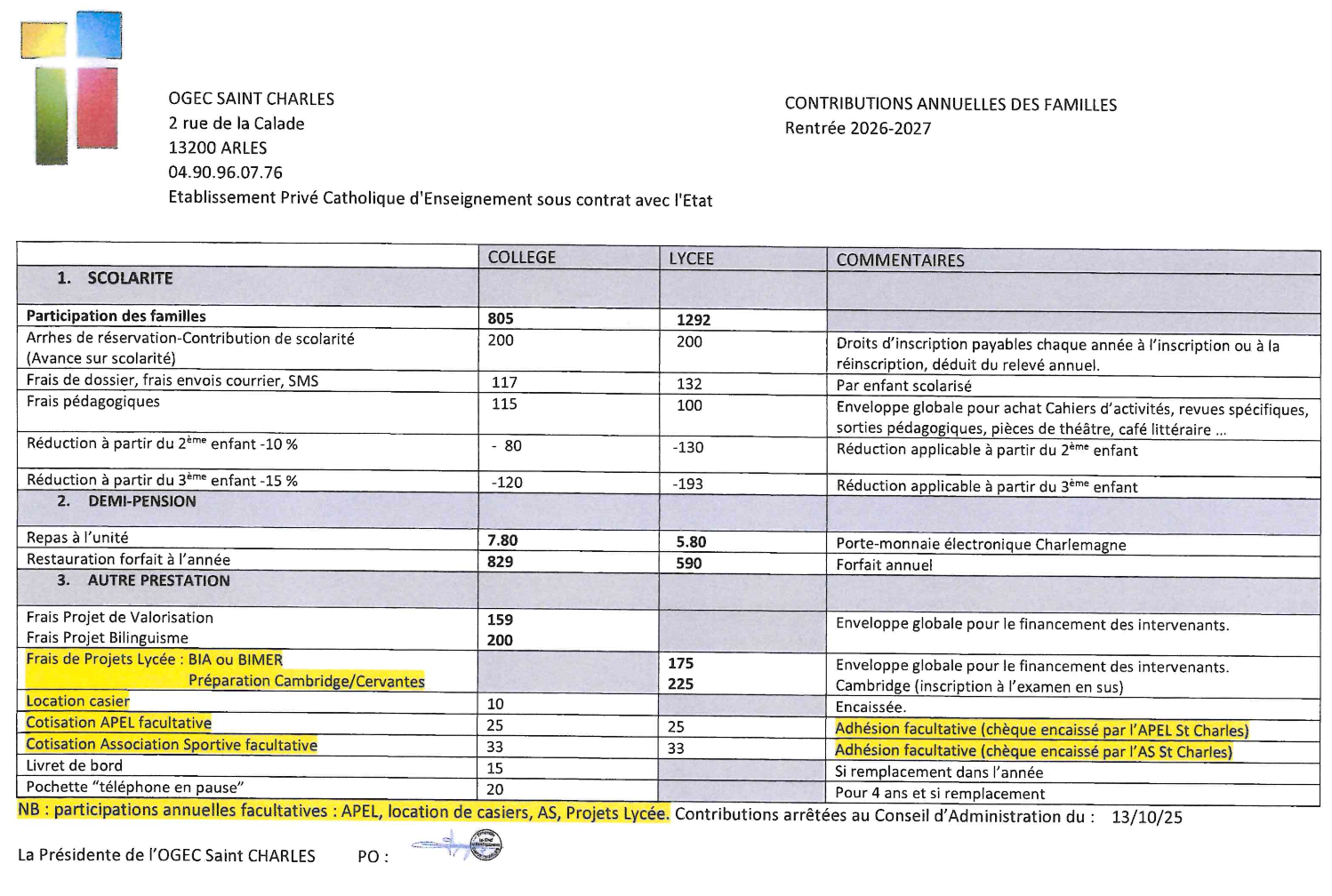 Découvrez nos tarifs pour la rentrée 2025/2026.